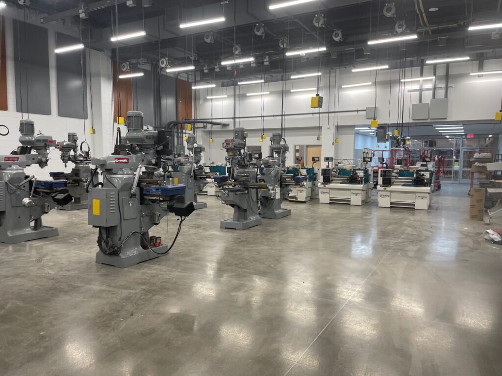 Specialized Rigging for Technical Equipment The rigging challenge was substantial: relocating precision machinery across multiple specialized shops including the machine shop, automotive shop, carpentry shop, and maintenance department. Meyer’s team executed a carefully phased approach, moving CNC equipment, industrial lathes, milling machines, surface grinders, metal cutting band saws, welding equipment, engines, and dozens of storage cabinets—all while maintaining the precision calibration and proper positioning essential for hands-on technical education.